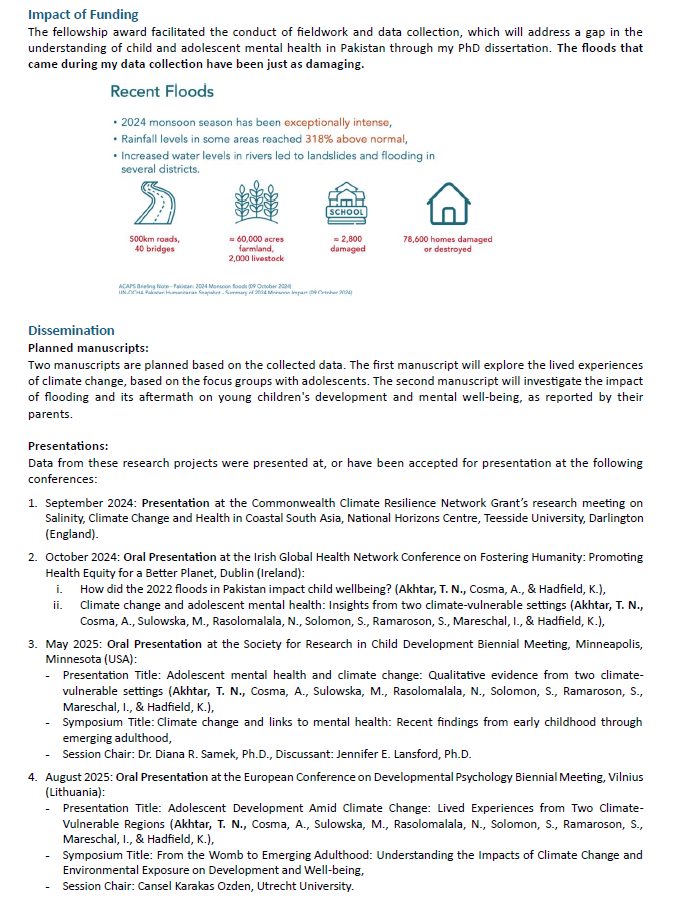 Postgraduate Research Fellowship Report - Tooba Nadeem Akhtar